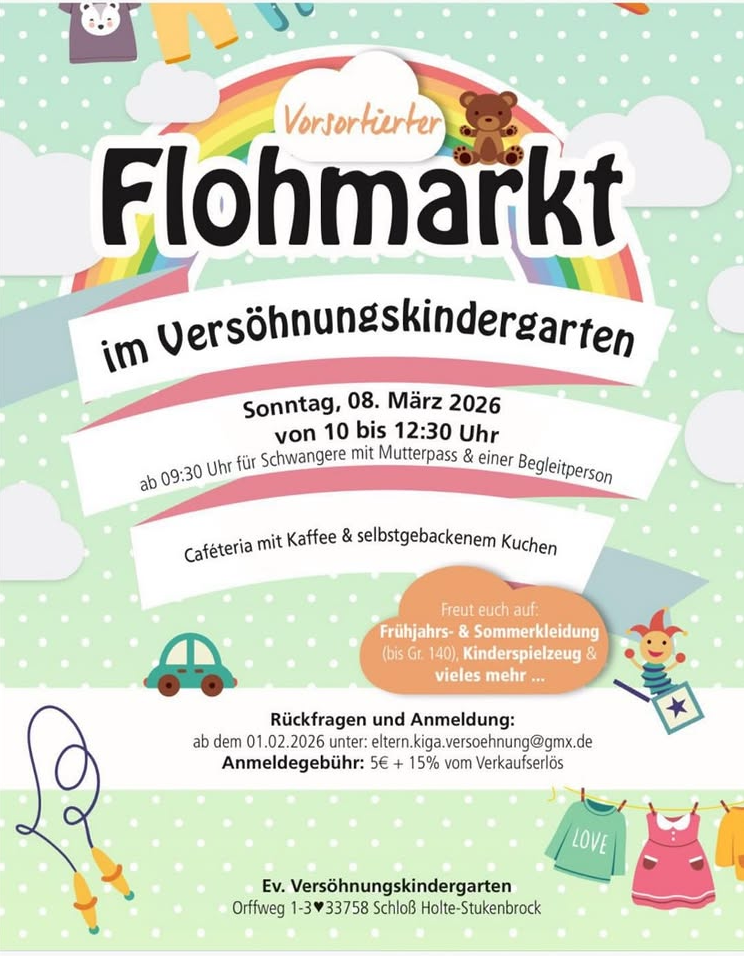Wir vom Förderverein der Buschkampschule, in Bielefeld Senne, veranstalten wieder unseren Frühlingsflohmarkt. Angeboten wird alles ab Größe 110/116, Bücher, Spielzeuge und vieles mehr. Anmeldungen und Informationen: foerder.verein@bks.schule