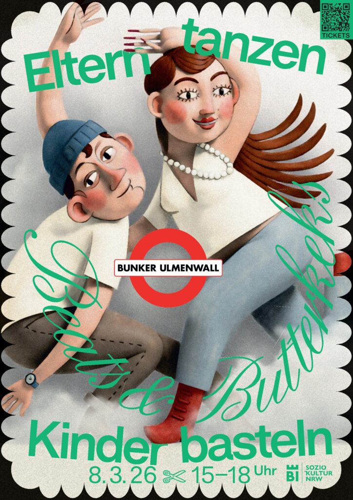 Eine Bunkerveranstaltung für die ganze Familie: Beats und Butterkeks. Eltern tanzen, Kinder basteln.