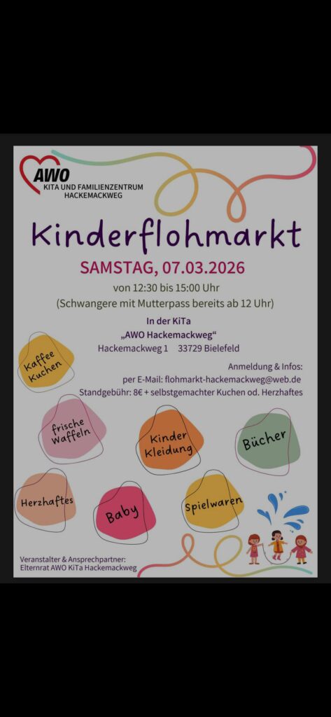 Der Elternrat der AWO Kita Hackemackweg lädt zum Kinderflohmarkt ein.