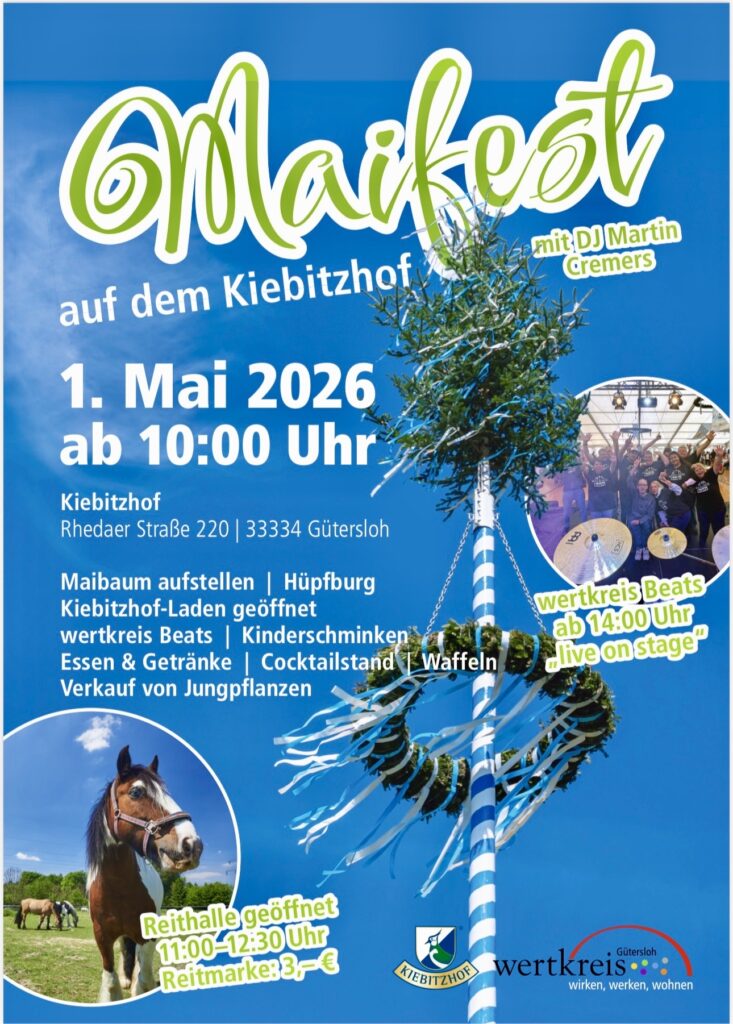 Am Freitag, 1. Mai ist es wieder so weit: Von 11 bis 17 Uhr lädt der Kiebitzhof in Gütersloh zum großen Maifest ein.