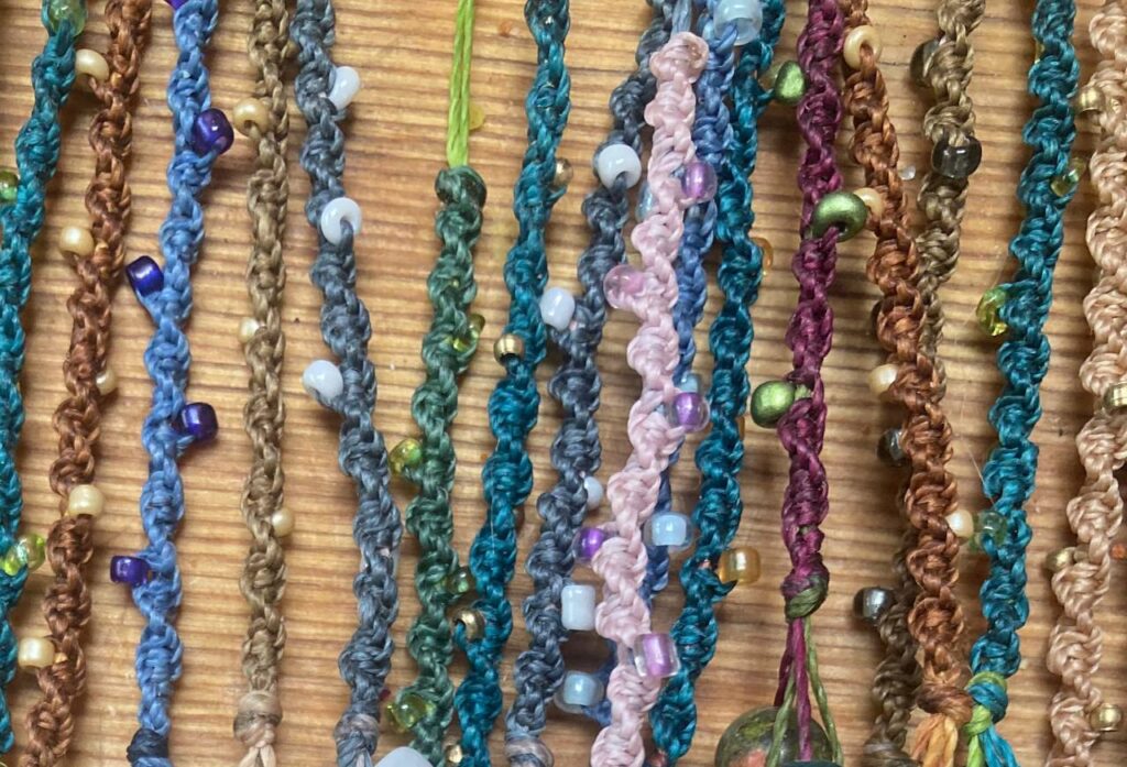 Du lernst den einfachen Makrameeknoten und eine Verschluss-Technik und kannst dabei aus vielen schönen Farben wählen.