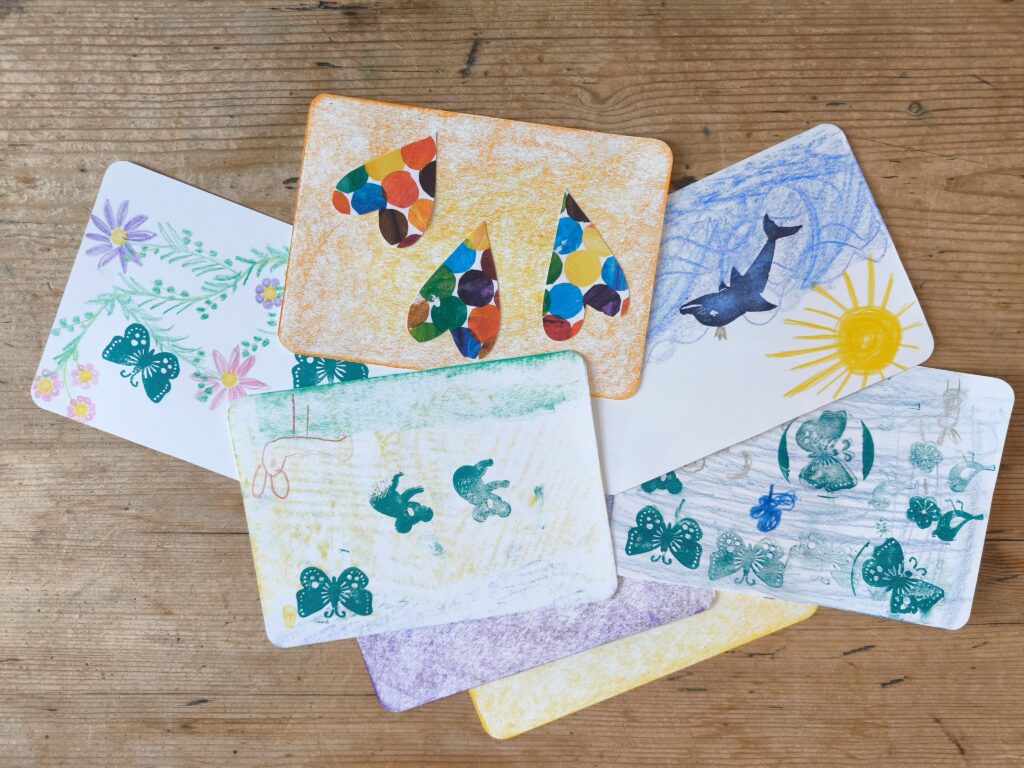Postkarten-Aussuchen war gestern. Jetzt malst, schreibst, klebst, stempelst und nähst du mit Farbe, Stoffen & Schätzen aus der Natur deine ganz eigenen Postkarten – für die ganz besonderen Grüße aus deinen Ferien.