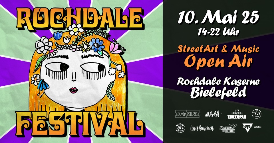 Der Freiraum Rochdale an der Oldentruper Str. 65 in Bielefeld in ein buntes Paradies für die ganze Familie! Beim Rochdale Festival – Electronic Music & StreetArt gibt es von 14 bis 22 Uhr jede Menge zu entdecken und auszuprobieren.
