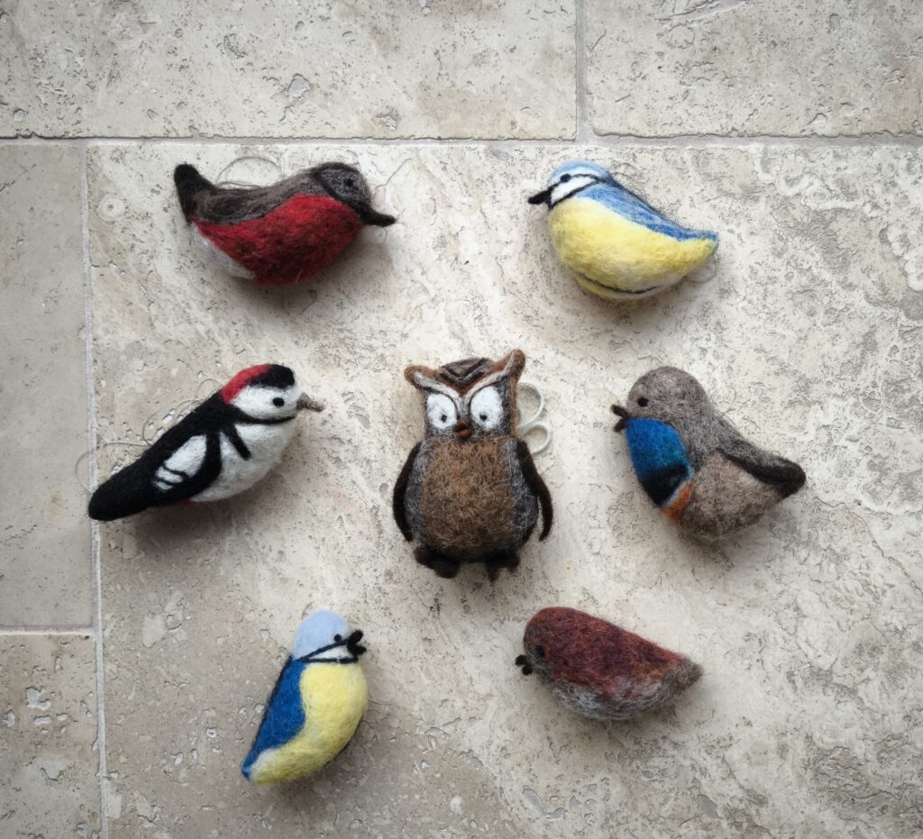 Buntspecht, Rotkehlchen und Kohlmeise haben ein so zauberhaftes Federkleid, das sieht aus Wolle gefilzt mindestens genauso schön aus.